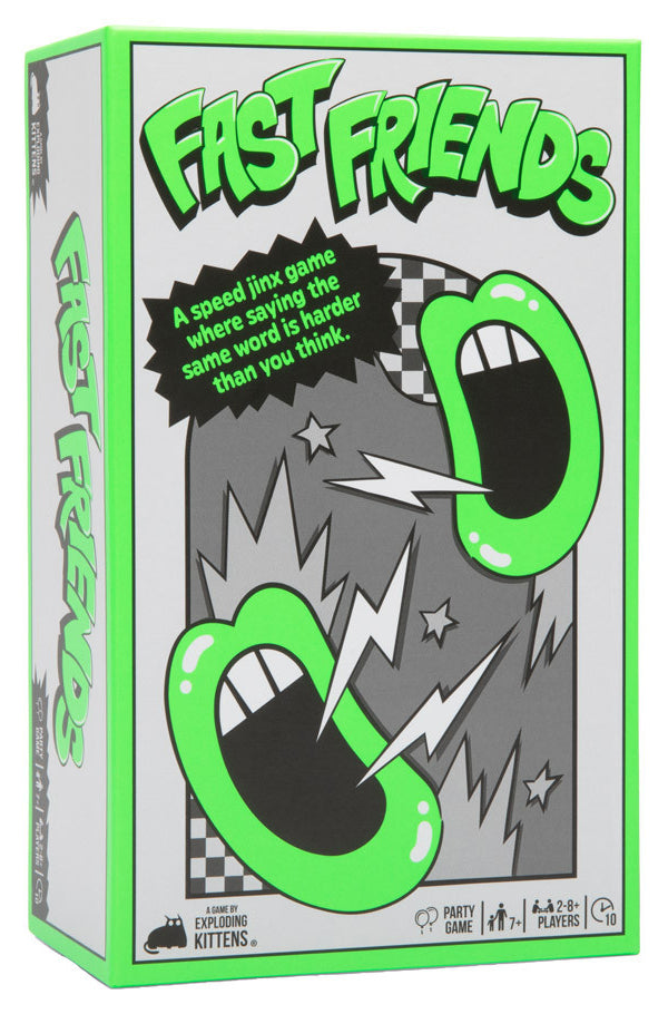 Get ready for Fast Friends, the speed jinx guessing game where saying the same word is harder than you think. Players race to match minds before the timer buzzes, hoping to shout the same phrase at the same time. Every round brings laughter, surprises, and friendly chaos as players lose Life Tokens and new pairs take their turn. Simple to learn, fast to play, and endlessly replayable, Fast Friends is the ultimate family game for family game night, parties, and holidays.
